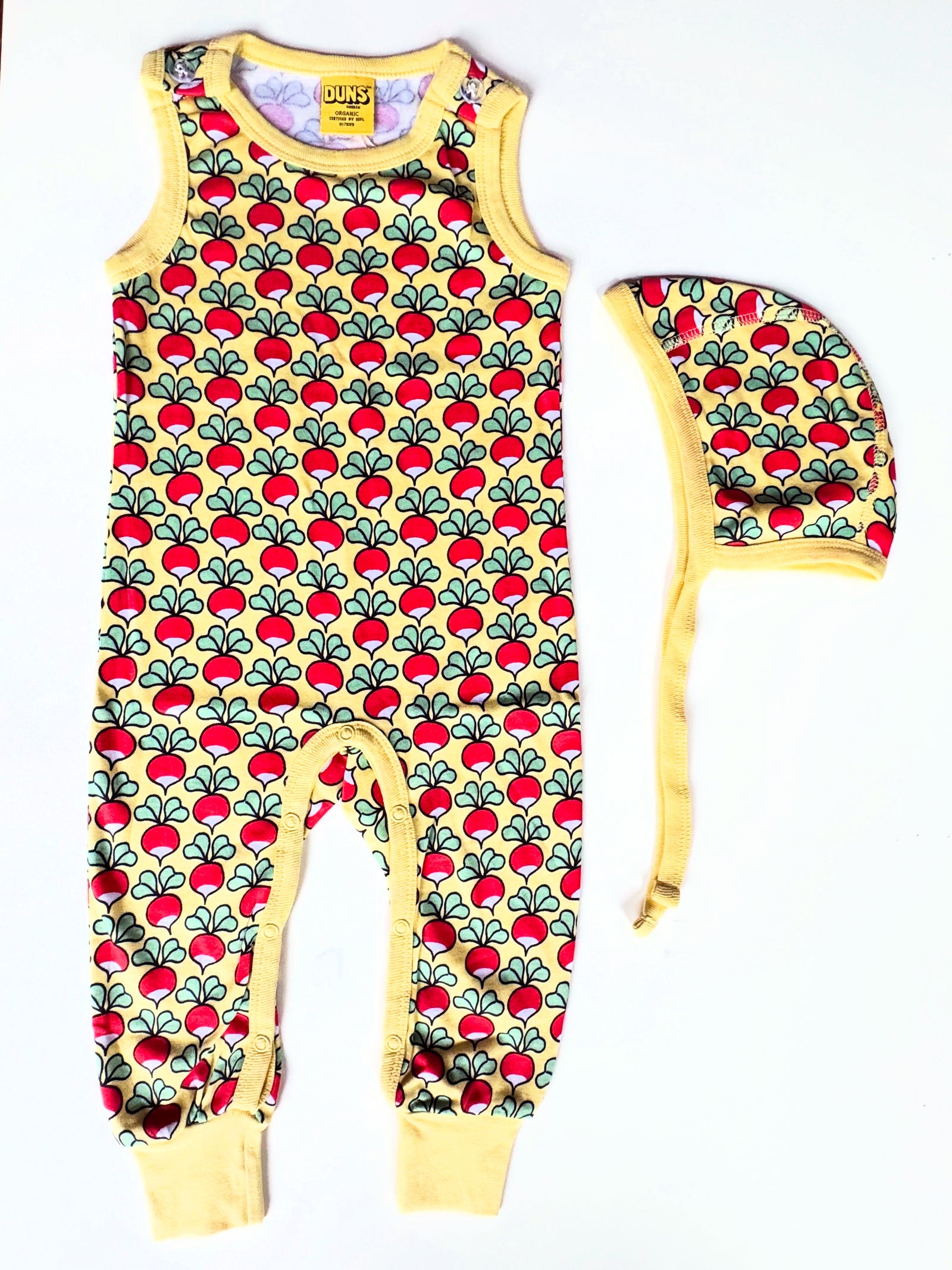 Duns Sweden - Radishes Yellow Cream 세트 던가리 & 보닛