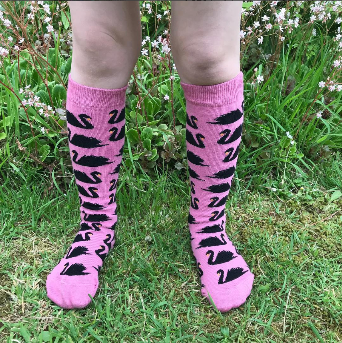 Slugs and Snails Knee Socks Swans - Pink Knee Socks Black Swans